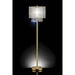 Imported crystal droplets cascade off this floor lamp finished in gold with a brilliant white shade.
