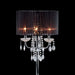 A stylish black shade covers a cascading set of imported crystal droplets surrounding a metal base.