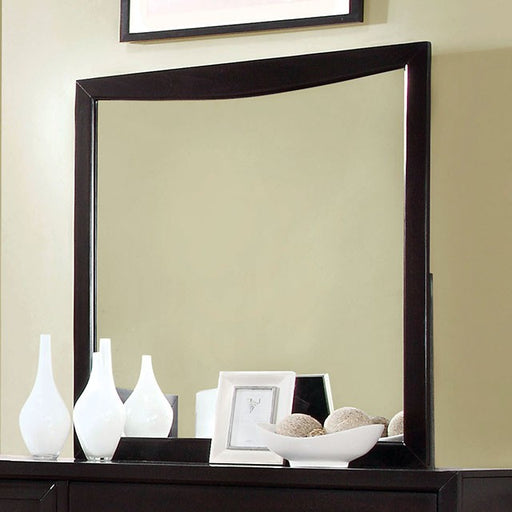 FurnitureOfAmericaWith a unique shape and dark espresso finish, this mirror makes an intriguing addition to any bedroom. Specifications Dimensions Mirror: 42"W X 44...