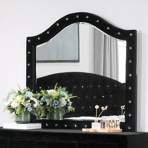FurnitureOfAmericaShowcase your personal taste with this bold statement piece in your bedroom. Fully upholstered in flannelette, this mirror features padded fabric a...
