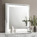 Framed in crisp white high gloss, this modern dresser mirror pairs perfectly with its matching six-drawer dresser for a cohesive contemporary look. A beveled edge and recessed inner panel create depth, while integrated white LED lighting offers soft illumination. Designed to enhance both function and style, this mirror brings clean lines and ambient glow to any modern bedroom setup.
