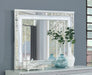 • Rectangular dresser mirror framed in silver metallic and mirrored trim
