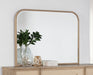 This dresser mirror is the perfect accent to brighten and expand your bedroom space. The clean lines of the frame are finished in beige oak, offering a neutral, sophisticated look that pairs seamlessly with various decor styles. The mirror enhances light and creates a sense of openness, making your room feel more spacious. Crafted with high-quality materials, it is durable and adds a touch of elegance to any setting. A stylish and practical addition to your dresser or wall.
