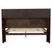 Refined and functional, this Jessica wood LED bookcase bed enhances any modern bedroom. Its integrated headboard offers open cubbies illuminated by soft LED lighting, creating the perfect place for books, decor, or nighttime essentials. The platform design ensures a clean, contemporary profile with no need for a foundation, while the warm cappuccino finish highlights the natural wood texture and craftsmanship.