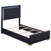 Explore the possibilities of modern features that render this chic bed a haven for relaxation and a comfy place to sleep and lounge. A stylish yet minimalist design feature is perfect for anchoring your contemporary bedroom. Assembled of wood products and melamine laminate, it offers updated and sturdy construction. Ethereal energy-efficient lighting frames its tall headboard, operated with a touch mechanism through headboard-mounted buttons. Gleaming gold metal finish feet are petite yet noticeable.