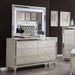 The glamor is in the details of this dresser from the Manar Collection. Featuring a decorative, circular pattern, only adding to opulence of the design. Your bedroom will be a place to pamper yourself with this set.