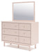 Pretty in pink. This dresser with mirror keeps the spirit of your home’s modern aesthetic while suiting all your young one’s needs. Its subtle blush finish brings a playful, charming vibe to organizing clothes and other essentials. Made for her and styled for you, it’s a lovely addition to a beautifully chic child’s bedroom.