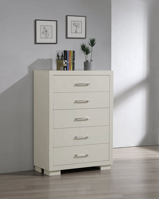 CoasterAdd easy storage and inviting style to your bedroom with a modern five-drawer chest. It's tall, compact silhouette conserves space while adding wel...