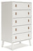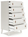 | Details | Made with engineered wood (MDF/particleboard/plywood) and decorative laminate for the right balance of affordability and durability, White painted finish with subtle replicated wood grain, Faux leather drawer pulls with brass-tone rivets; light brown and gray options included, 5 smooth-gliding drawers with vinyl-wrapped sides and back, Splay legs, Safety is a top priority, clothing storage units are designed to meet the most current standard for stability, ASTM F 2057 (ASTM International), Drawers extend out to accommodate maximum access to drawer interior while maintaining safety, Assembly required | |