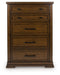 Style, simplicity and charm are hallmarks of this chest of drawers. Created with casual spaces in mind, it has the versatility to suit styles from craftsman to modern farmhouse. The rich brown finish aligns with your refined-meets-relaxed approach to everyday style. And for a timeless touch, five drawers with picture frame detailing accommodate your needs.