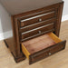 This night stand offers two solutions at once. It is visually stunning, and has unrivaled storage space to keep your fabulous new room clutter free. With three deep drawers, this nightstand can hold clothes, jewelry, and anything else necessary. The brown cherry finish and antique hardware of this piece gives it a subtle elegance. An underlight nightlight gives you enough light to see without waking anyone up.