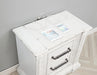 Charming and functional, this two-drawer nightstand blends classic design with thoughtful details. A vintage white finish softens the ornate carvings and sculpted base, while antique bronze handles bring graceful contrast. Dual USB ports are hidden at the back for modern convenience, while felt-lined drawers offer protected storage. Built from poplar and engineered wood, it balances timeless beauty with everyday function.