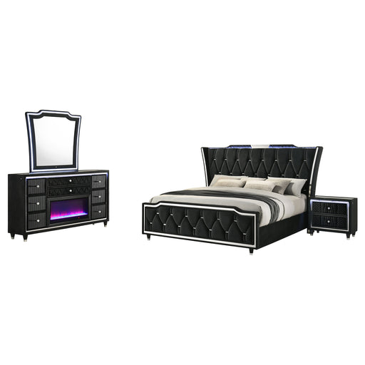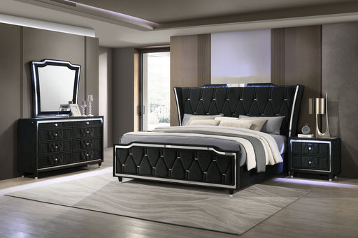 CoasterThis bedroom set transforms everyday rest into a radiant retreat, blending plush textures with ambient light. Upholstered in a black velvet, each p...