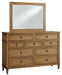 | Details | B895B7: Includes upholstered panel headboard, footboard, rails and slats, Made with hardwood solids, hickory veneer and MDF substrates, Light brown wood-tone finish, Polyester upholstery, Foundation/box spring required, sold separately, Mattress available, sold separately, Assembly required, B895B1: Includes dresser and mirror, Made with hardwood solids, hickory wood veneer and MDF substrates, Light brown wood-tone finish, Dark bronze-tone drawer pulls, 9 drawers with fully finished interior, dovetail construction and heavy duty ball-bearing side glides (top drawers felt lined), Mirror attaches to back of dresser, | |