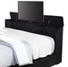 Unveil a new chapter of indulgence with this velvet wingback bed, where high style meets high tech. Richly upholstered in decadent black velvet, its vertical channeled frame embraces you in plush softness. Hidden within the footboard, a concealed TV lift fits up to 50-inch TVs and rises with the push of a button. A built-in power outlet with three AC ports adds plug-and-play convenience. This bed transforms any room into a sanctuary of luxury, beauty, and cinematic escape.