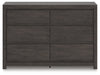 | Details | Made with engineered wood (MDF/particleboard/plywood) and decorative laminate for the right balance of affordability and durability, Dark charcoal finish over replicated oak grain, Decorative laminate replicates natural or man-made material surfaces with consistent color, pattern and texture, Recessed hand grabs create hardware-less effect, 6 smooth-gliding drawers, Drawer interiors are lined with a faux linen laminate for a clean, finished look, Safety is a top priority, clothing storage units are designed to meet the most current standard for stability, ASTM F 2057 (ASTM International), Drawers extend out to accommodate maximum access to drawer interior while maintaining safety, Assembly required | |