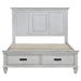 With a casual, rustic vibe perfect for a beachside cottage, this platform bed features a shutter style paneled headboard that lends a tropical design. The bed frame also boasts a subtle wire-brushed finish with molding accents. The footboard offers two spacious drawers, each with soft-closing drawer glides and dark finished hardware. In addition, this lovely bed frame is slightly raised on square carved, tapered feet. Available in three finishes, this bed is sure to fit in your bedroom's existing color palette.