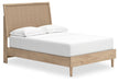 Clean-lined and contemporary—but far from stark—this bedroom package is a fresh style awakening. Pairing a light finish with replicated oak grain and textured beige details that replicate the look of cane, its mixed materials bring a naturally versatile vibe to your bedroom. Sleek, simple hardware plays perfectly with the modern aesthetic.