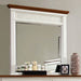 Both cottage and contemporary, this mirror combines two styles all into one. It features beautiful contrasting white and oak finish and smooth wood details.