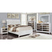 Lavish design crafted with a tall, padded headboard with intricate tufting. Nailheads trim the edges of the leatherette headboard, while case goods feature drawers with mirror front panels. Available in either black or silver finish, this set is perfect to vitalize any contemporary style bedroom d