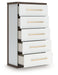 | Details | Made with engineered wood (MDF/particleboard/plywood) and decorative laminate for the right balance of affordability and durability, Two-tone finish (dark brown finish over replicated walnut grain; matte white finish), Decorative laminate replicates natural or man-made material surfaces with consistent color, pattern and texture, Handles with champagne finish, 5 smooth-gliding drawers, Drawer interiors are lined with a faux linen laminate for a clean, finished look, Safety is a top priority, clothing storage units are designed to meet the most current standard for stability, ASTM F 2057 (ASTM International), Drawers extend out to accommodate maximum access to drawer interior while maintaining safety, Minor assembly required | |