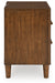 Details Made with hardwood solids, mango wood veneer and MDF substrates, Medium brown wood-tone finish, 2 drawers with fully finished interior, dovetail construction and heavy duty ball-bearing side glides, Round tapered legs, 110V power supply with USB-A and USB-C charging ports, Power cord included; UL Listed