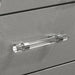 Create a room with this bedroom set from the Maddie Collection. The curved headboard is padded and upholstered in a horizontally-tufted fabric, emphasizing the silver finish. The night stand, dresser, and chest feature acrylic legs, crystal accents, and a beveled mirror with a LED light creates a glamorous aesthetic. Give into your glitzy side with this opulent set.