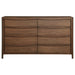 Introduce abundant storage and plenty of style to your bedroom with this transitional eight-drawer dresser. It delivers plenty of easy organization for clothing and accessories with drawers that include cedar lining for protection and felt lining in its top two. A walnut veneer finish is warm and refined, perfect for an approachable but elegant ambiance in your bedroom. The dresser features gently curved fingertip pulls that add dimension and depth to the front of the case. A wide top provides ample space for decor and personal effects, perfect for a framed photo, jewelry box or a vase of fresh flowers.