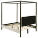 • Contemporary canopy bed with a clean-lined and structured silhouette