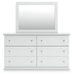 | Details | B139B43: Includes panel headboard/footboard and rails, Made with engineered wood (MDF/particleboard/plywood) and decorative laminate for the right balance of affordability and durability, Replicated solid white paint, Decorative laminate replicates natural or man-made material surfaces with consistent color, pattern and texture, Foundation/box spring required, sold separately, Mattress available, sold separately, Assembly required, B139B40: Includes dresser and mirror, Made of engineered wood (MDF/particleboard), Knobs with pewter-tone finish, Scalloped moulding, 6 smooth-operating drawers, Includes tipover restraint device, Mirror attaches to back of dresser; can also be mounted on wall horizontally or vertically, Safety is a top priority, clothing storage units are designed to meet the most current standard for stability, ASTM F 2057 (ASTM International), Drawers extend out to accommodate maximum access to drawer interior while maintaining safety, B139-46: Made of engineered wood (MDF/particleboard), Pewter-tone knobs, Scalloped moulding, 5 smooth-operating drawers, Small Space Solution, Includes tipover restraint device, Safety is a top priority, clothing storage units are designed to meet the most current standard for stability, ASTM F 2057 (ASTM International), Drawers extend out to accommodate maximum access to drawer interior while maintaining safety, B139-91: Made of engineered wood (MDF/particleboard), Pewter-tone knobs, 1 smooth-operating drawer, 1 storage cubby, Scalloped moulding, Small Space Solution, | |