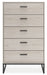 Light and bright, this chest of drawers is inspired by chic design. A light natural finish over replicated oak grain offers an authentic touch to this so-cool piece. It beautifully blends the hues of natural living with the edginess of your modern lifestyle.