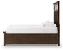 Style, simplicity and charm are hallmarks of this queen panel storage bed. Created with casual spaces in mind, it has the versatility to suit styles from craftsman to modern farmhouse. The rich brown finish aligns with your refined-meets-relaxed approach to everyday style. Short on storage space? Ultra-spacious under bed drawers keep extra clothes and linens neatly tucked away. And for a timeless touch, black metal fretwork on the headboard brings an inviting mixed-material feel to the overall look.