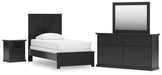 Maribel Twin Panel Bed with Mirrored Dresser and Nightstand