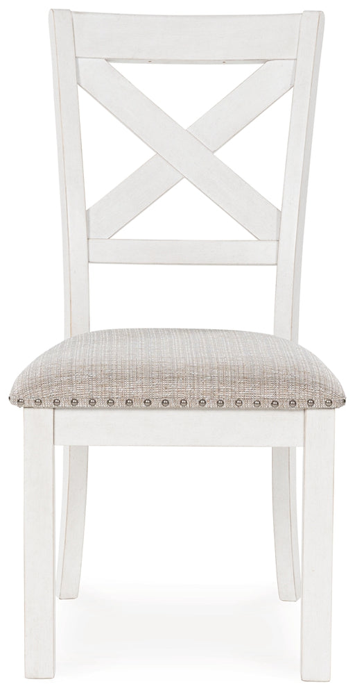 Signature Design by Ashley®Consumer's ChoiceThis dining chair is sure to impress come mealtime. With its antiqued white finish, classic country X-back and light gray upholstery with nailhead ...