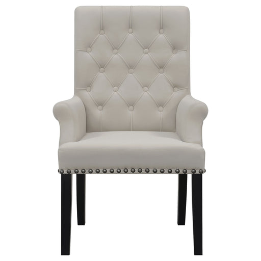 CoasterDesigned for both luxury and support, this arm chair brings an elegant presence to any dining space. Its button-tufted high back and rolled top len...