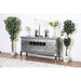 This dining collection will be the focal point of any home with its cool gray finish and elegant structure. This stunning server features on its front panels the same Moroccan-inspired inset patterns found on the matching table. Wine storage, drawers, and shelves provide storage for a stylish and functional piece.