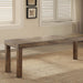 Bring the countryside into your dining space with this rustic masterpiece. The bench offers added details that is similar to the dining table. Split-wood textured top with natural cracks give this bench a natural appearance.