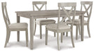 | Details | D291-25: Made of engineered wood, Tabletop made of melamine with a replicated barn wood effect, MEGA-TUFF® melamine surfaces are made of easy-clean melamine which is heat-, scratch-, water- and stain-resistant, Dining table with tapered legs and a gray finish, Seats up to 6, Assembly required, D291-01: Made of wood, Light beige woven polyester upholstery and gray finish, X-back design with tapered legs, Assembly required, | |