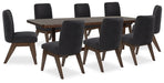 Casual contemporary styling with a decidedly modern vibe. This dining package's rich brown finish is warm and inviting, dressing your dining spot with on-trend elegance. It's a simply stunning show of great taste.