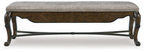 From its ornamental appliques to its large scale, this dining bench makes a bold statement. With ornately shaped legs, a plush cushioned seat and a storage drawer, the opulent bench wows with stunning style. The look is timeless. The feel? Right at home.
