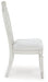 Transform your home into a haven of timeless elegance with this dining chair. Its traditional silhouette, adorned in a classic antiqued white finish, is paired with plush cushioning covered in light pearl gray upholstery. Whether you're settling in at mealtime or working from home, this chair serves your sense of relaxed refinement beautifully.
