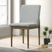 This dining chair is a perfect addition to any casual dining room, with its straightforward design that will leave a lasting impression on your family and friends. Sit comfortably on padded seats and backs with welts--their warm beige fabric blending perfectly with the warm natural tone finish.