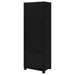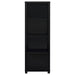 Immerse yourself in the sleek sophistication of this media tower bookcase, a beacon of organization and style. With three tiers of shelving, it presents a stage for your cherished books and collectibles, turning clutter into a curated display. Below, a single-door cabinet offers concealment for items best left unseen, its handle designed for versatility to suit your spatial needs on either side. This piece is not just a bookcase; it's a statement of functionality, wrapped in a silhouette that speaks of minimalist elegance and a commanding presence.