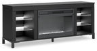 Level up your gaming experience and make movie nights to remember. This TV stand with electric fireplace extends your entertainment beyond the screen. Its built-in fireplace brings the heat, synchronizing with LED backlighting on the shelves. And you can customize the vibe with trendy color options: red, green, blue and magenta. Modern function. Captivating, cool style. With this TV stand, revamp your home’s recreational hub like never before.