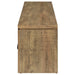 Immerse yourself in the rustic allure of our sturdy TV stand, a harmonious blend of function and aesthetics. Crafted with a rich mango finish, its character is accentuated by rough sawn distressing and layers of warm colors, infusing your space with a touch of vintage charm. Beyond its captivating design, this stand is a testament to thoughtful craftsmanship. It boasts a spacious storage compartment, flanked by two smoothly sliding drawers fitted with euro drawer glides, ensuring easy access. The bold black metal pull handles stand out, providing a striking contrast and ease of use. This TV stand is not just furniture; it's a statement of timeless beauty and functionality.