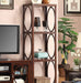 Finished in cherry, this pier cabinet stands at either side of the TV console and offers three levels of shelving display.