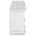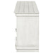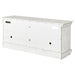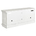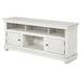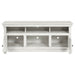 Complete a media center in your inviting home with a modern farmhouse TV stand. It's an approachable design with roughhewn wood details that create texture and dimensionality in your living space. Two shelves and six compartments create ample storage, perfect for everything from peripherals and accessories to personal decor. The media console features a clean-lined silhouette with a slim profile, perfect for a flat panel or wall-mounted television. This TV stand accommodates televisions up to 65 inches.