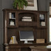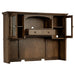 How about a hutch to create an immaculate office space? Designed to enhance storage and style, this piece has plenty of space to organize your items. Two side cabinets with glass inserts make for a classy and traditional appearance. A center shelf is ready to display your favorite decor. This piece is finished in lovely burnished oak.
