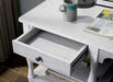 Being productive at home is a goal for every one of us. This white side desk with turned legs and multiple shelving is the perfect companion to anyone working from home. The pull-out storage drawer can hold your notebooks and writing utensils, while the smooth top offers generous workspace.