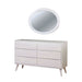 For a quick modern update to your home, this collection will add that trendy mid-century appeal. Coordinating case goods such as this dresser boast slim flared legs and recessed handle drawer pulls.